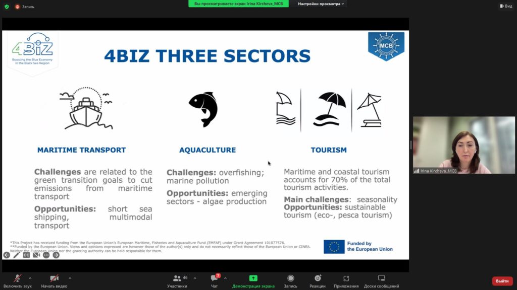 4BIZ Project Consortium, which includes 9 project partners and 17 associated partners from Romania, Bulgaria, France, Greece, Türkiye, Georgia and Ukraine, together with their stakeholders, plan to develop a unique set of activities to support SMEs and start-ups specialized on Fisheries and Aquaculture, Coastal and Maritime tourism and Maritime transport that is covering all the signatory states of the CMA.