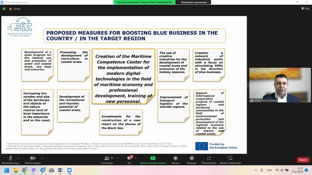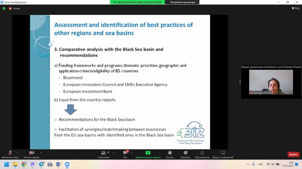 – In the last month, we have reached an important milestone that consisted on the accomplishment of the mapping process of the current status of the Blue Business sectors and the drafting of the Country Reports regarding the Blue Business sectors in Romania, Bulgaria, Türkiye, Georgia and Ukraine. At present, we are distributing the Country Reports to different authorities at national level and today, on March 17th, 2023, we are organized the 4BIZ Workshop for the Analysis of the final Country Reports. – Prof. Dr. Eden MAMUT BSUN Secretary General and 4BIZ Project Coordinator
